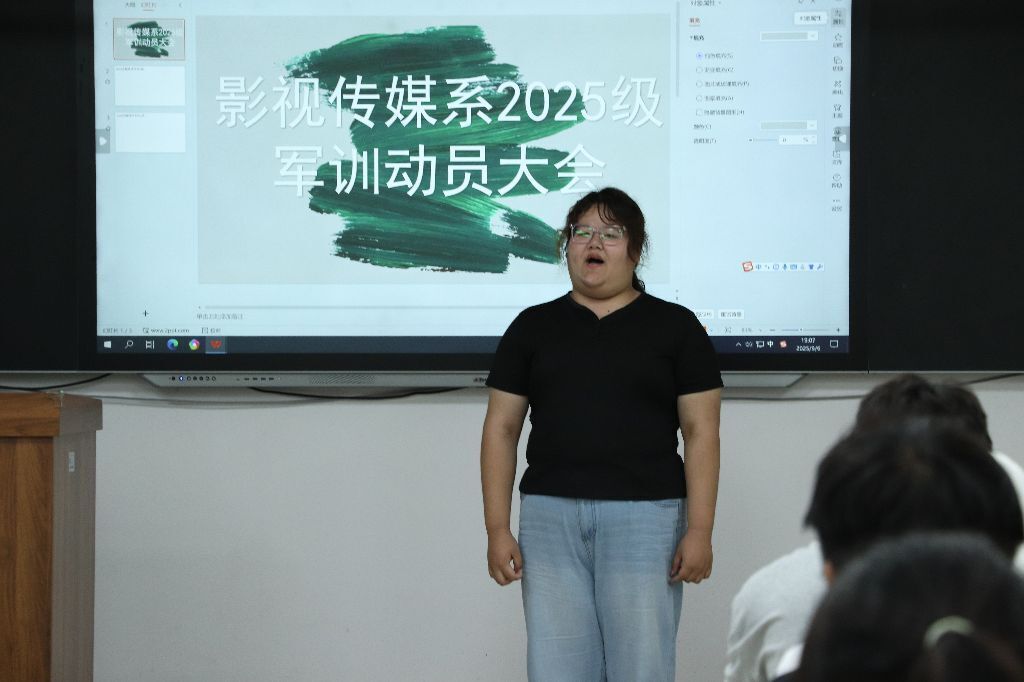 为引导2025级新生顺利开启大学新征程,快速适应校园生活并培养责任意识,9月6日晚,影视传媒系于知行楼召开2025级新生“开学第一课”主题班会暨军训负责人竞选活动,2025级全体新生及辅导员共同参与了本次活动。