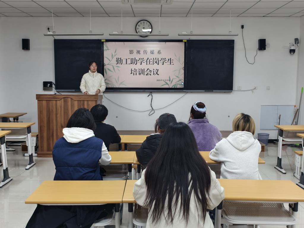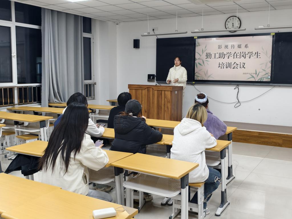 为进一步规范勤工助学学生岗位服务流程,提升卫生清洁工作质量,11月19日,勤工助学在岗学生专项培训在知行楼B407教室如期举行。生卫部部长边梦瑶主讲,全体在岗勤工助学学生参与培训。