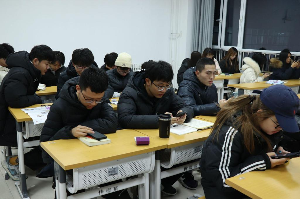 本次竞赛内容涵盖网络刷单诈骗、虚假购物诈骗、校园贷陷阱、冒充熟人诈骗等高发诈骗类型,考验同学们对网络防诈骗知识的精准掌握;部分题目结合真实诈骗案例改编,更具针对性和警示性。教室内氛围专注有序,全体同学的目光聚焦于手机答题界面,将竞赛的“全员参与”理念落到实处。