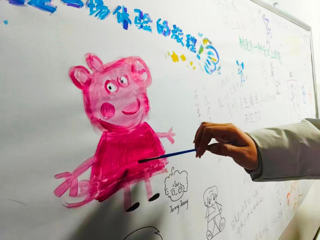 活动现场,新生们以绘画或文字为载体,在长卷纸上尽情抒发内心想法,记录入学以来的情绪与感悟。创作结束后,部分新生主动分享自己的作品与心路历程,现场氛围温暖而热烈。通过创作与分享环节,新生的自我表达与共情能力得到锻炼,同时感受到了温暖与支持,增强了对影视传媒系的归属感与认同感。活动最后,工作人员组织自愿参与的新生合影留念。