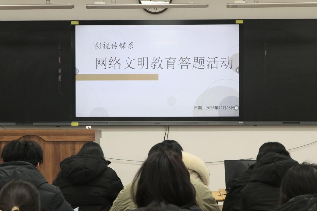 为进一步强化网络文明教育,引导同学们树立正确的网络观,提升网络素质和安全意识,12月28日,影视传媒系组织开展网络文明教育答题活动,25级全体学生参加。