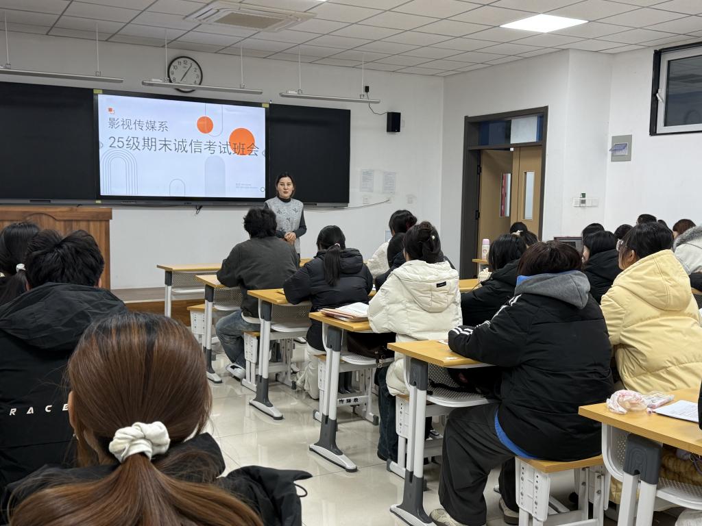 为进一步加强考风考纪建设,营造公平公正的考试环境,引导同学们树立诚信应考意识,1月8日,影视传媒系组织各班级召开期末诚信考试教育主题班会。