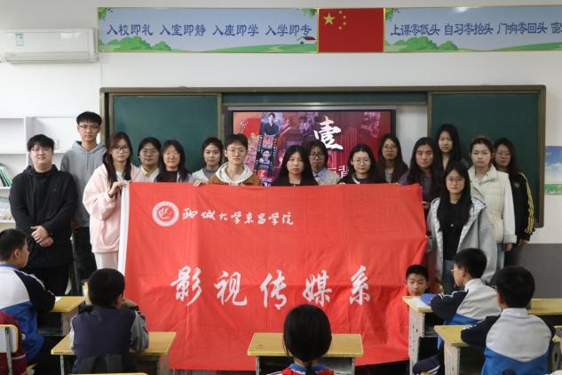 为厚植青少年爱国情怀,让红色历史与影视文化走进校园,4月3日,影视传媒系“光影之行”党员先锋队走入梁庄小学开展影视观赏活动。